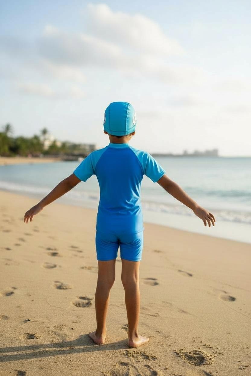 Made from premium quick-dry fabric, this boys superhero swimwear offers excellent stretch, comfort, and durability. Perfect for parents searching for kids swimming costume India, this outfit keeps kids protected while looking cool at the beach, pool, or water park.
