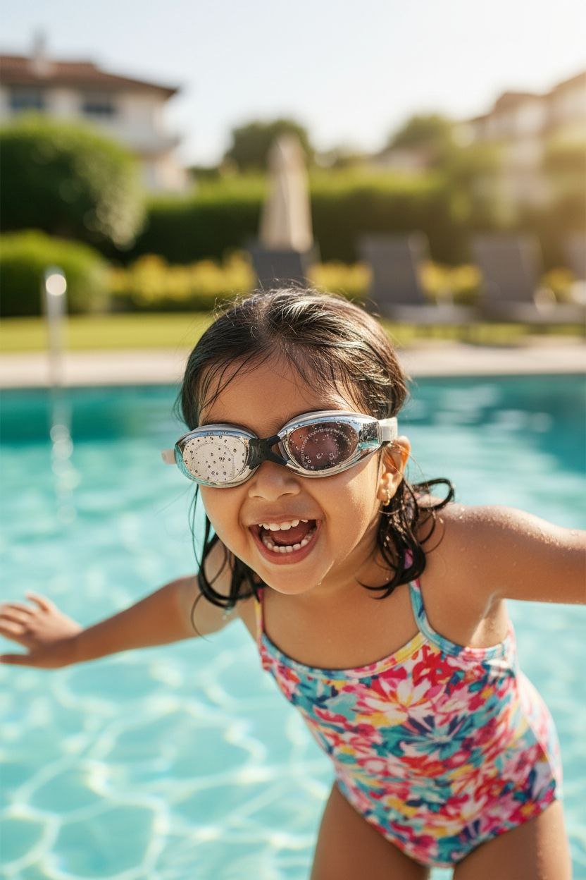 Swim goggles are an essential swimming accessory designed to protect your child’s eyes and help them see clearly underwater.