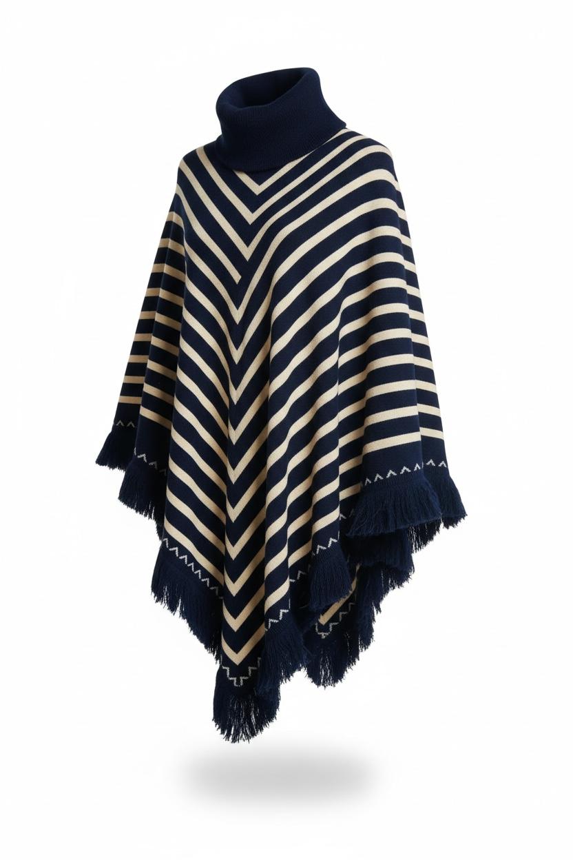 The classic striped pattern with delicate fringe detailing gives it a premium look, making it perfect for casual outings, winter walks, family gatherings, and travel. Easy to wear over dresses, tops, or sweaters, this poncho shawl is a must-have winter essential for girls.