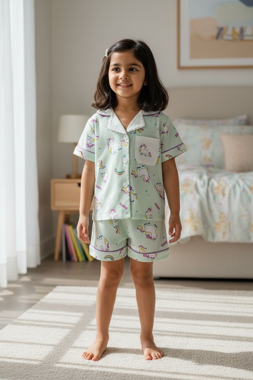 Unicorn Printed Cotton Night Suit Set – Shirt & Shorts