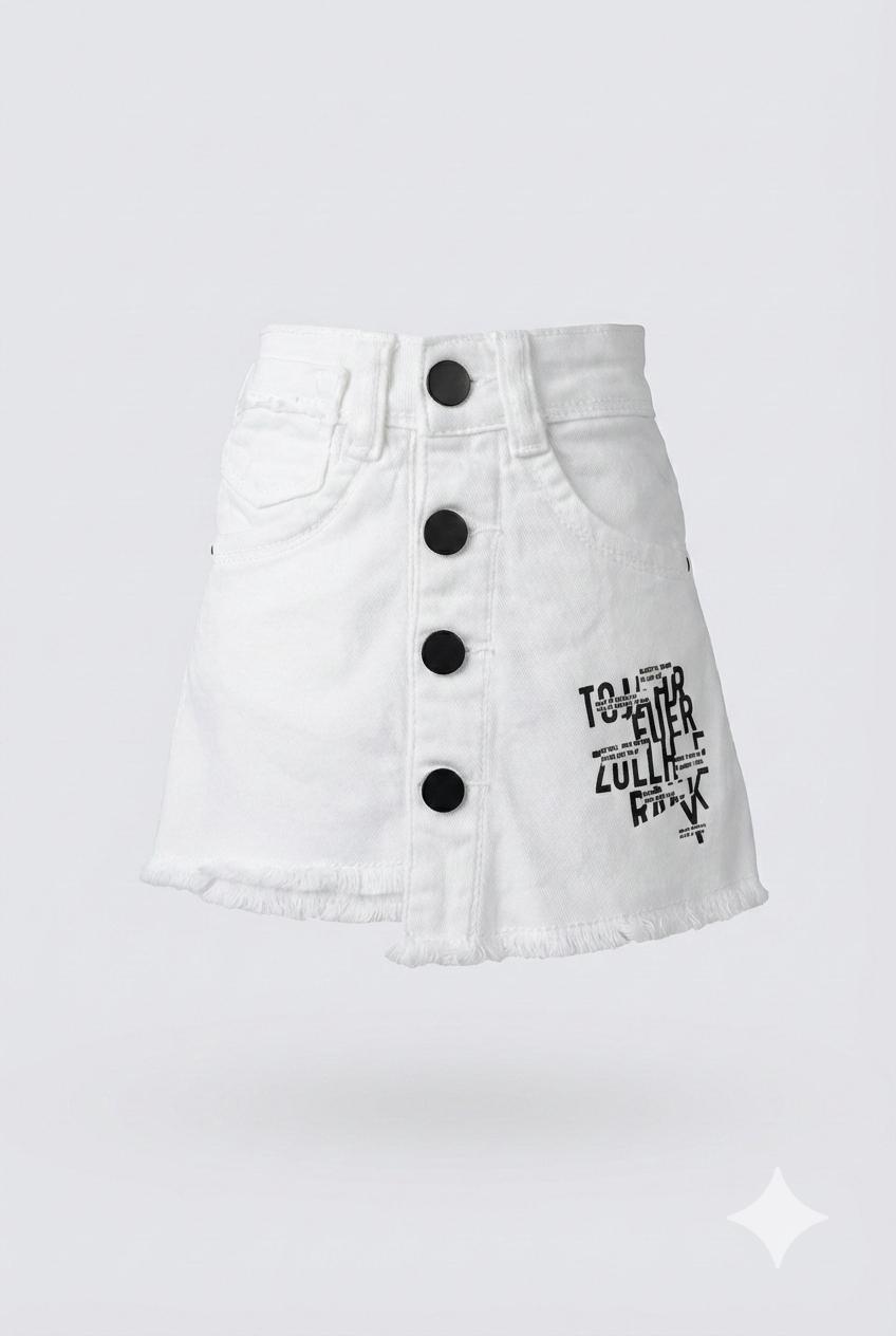 This girls’ white denim skirt features a trendy front button design and a flattering A-line silhouette. Made from soft yet durable denim, it offers comfort while maintaining structure for a polished look.