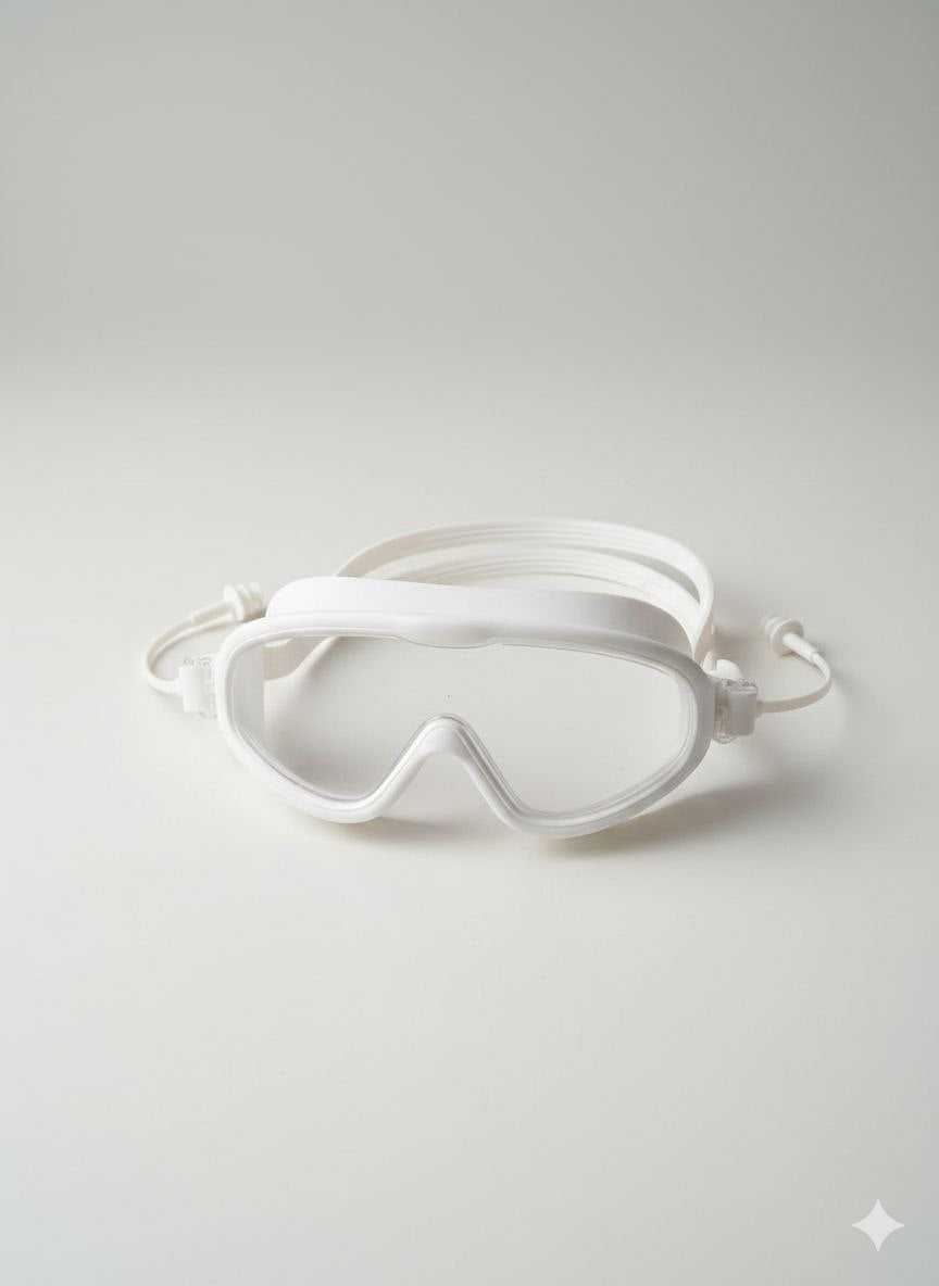White Unisex Swimming Goggles With Ear Plugs – Clear Vision, Leak-Proof, Anti-Fog Eye Protection